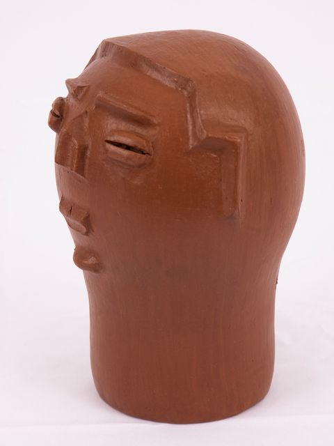 Escultura em barro moldada artesanalmente, marcada por textura e expressão natural.