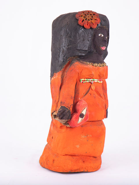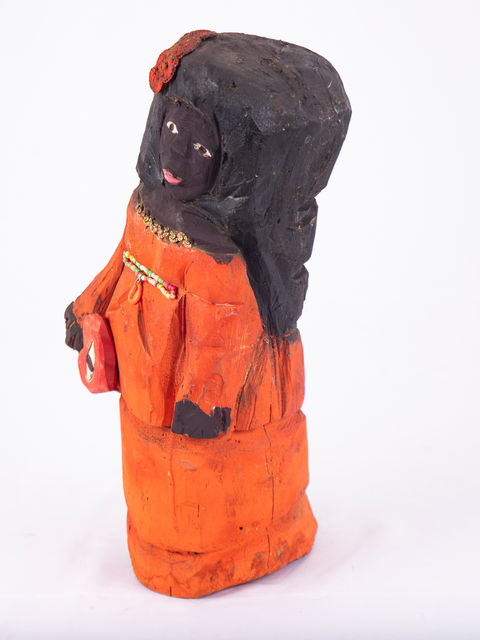 Escultura em madeira talhada artesanalmente, marcada por textura e naturalidade. Uma peça única que traduz o diálogo entre natureza e criação feminina.