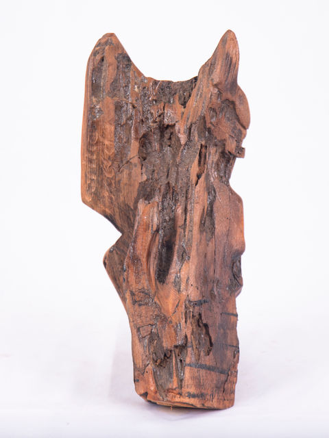 Escultura em barro moldada artesanalmente, marcada por textura e expressão natural.