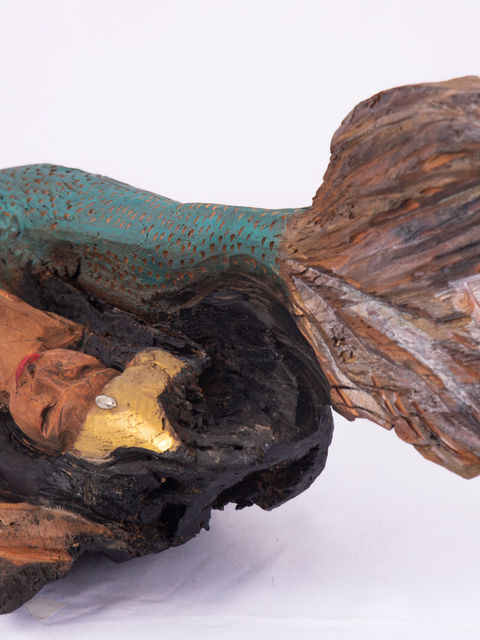 Escultura em madeira talhada artesanalmente, marcada por textura e naturalidade. Uma peça única que traduz o diálogo entre natureza e criação feminina.