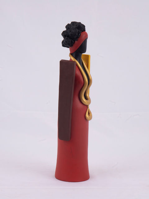 Escultura em barro moldada artesanalmente, marcada por textura e expressão natural.