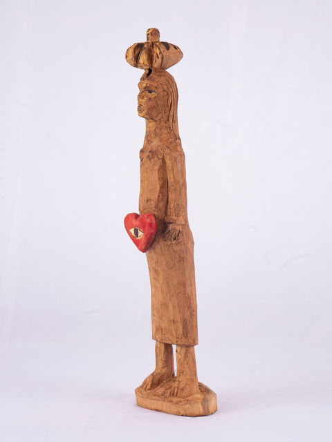 Escultura em madeira talhada artesanalmente, marcada por textura e naturalidade. Uma peça única que traduz o diálogo entre natureza e criação feminina.