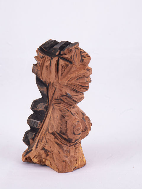 Escultura em madeira talhada artesanalmente, marcada por textura e naturalidade. Uma peça única que traduz o diálogo entre natureza e criação feminina.